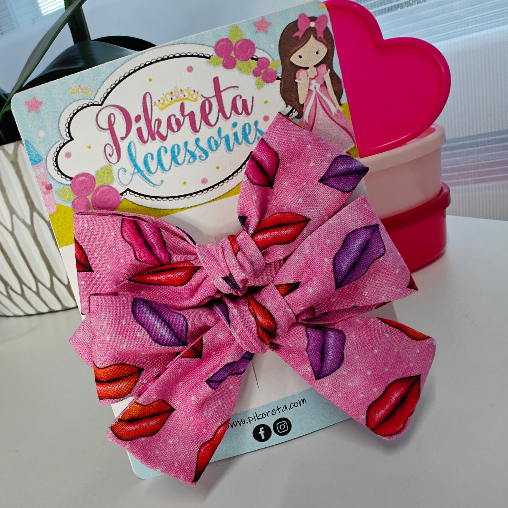 Par de lacitos en tela de la labios/beso