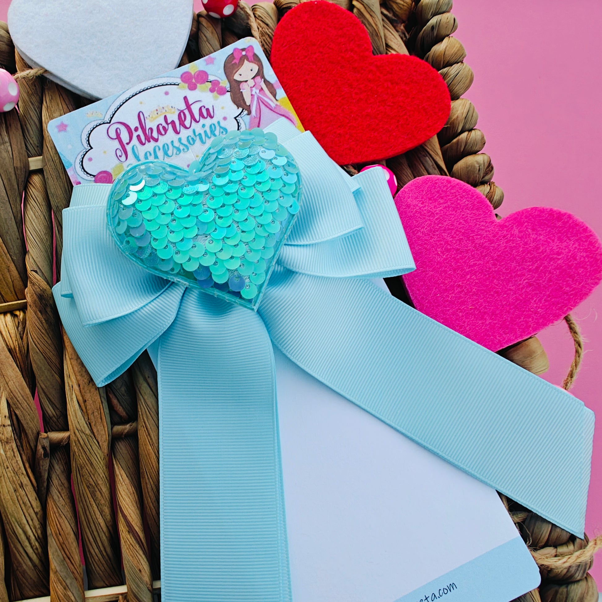 Lazo cinta estilo coquette con centro en corazón lentejuelas
