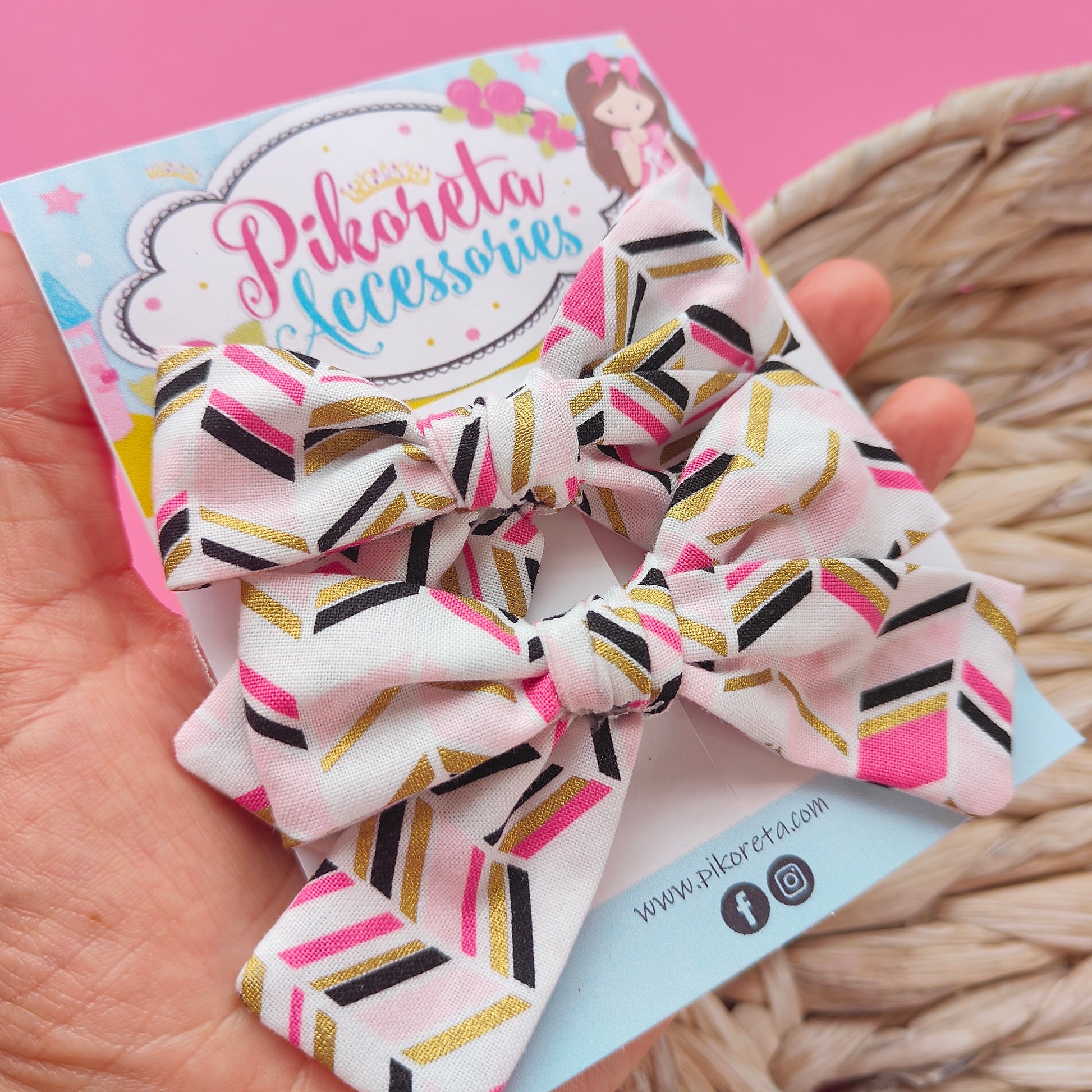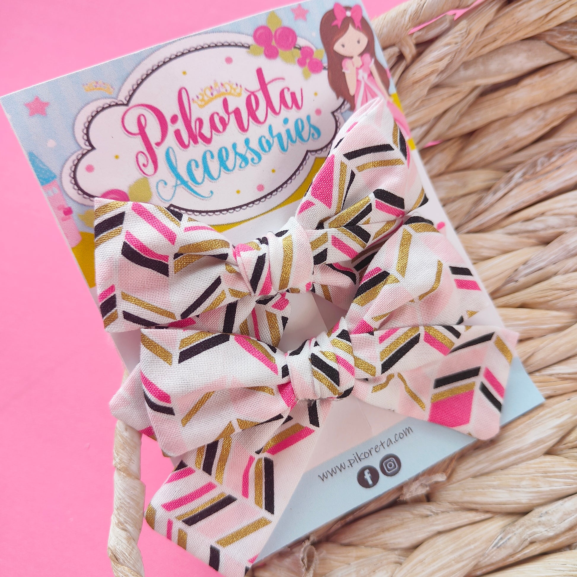 Clips parejitas tamaño pequeño tela tonos rosa, negro dorado