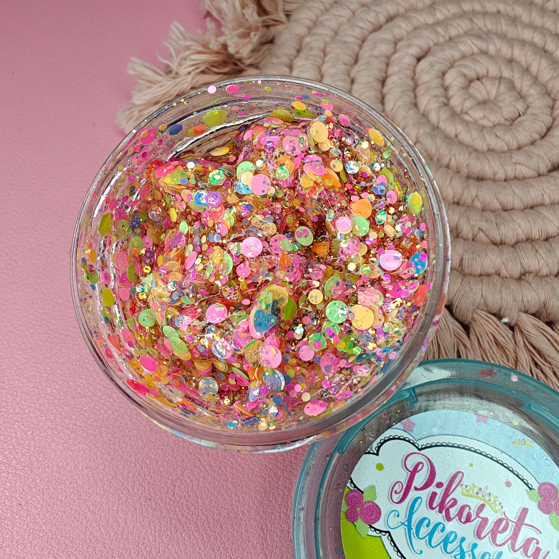 Dale un toque divertido al peinado de tú PIKORETA con nuestro colorido Glitter Gel.