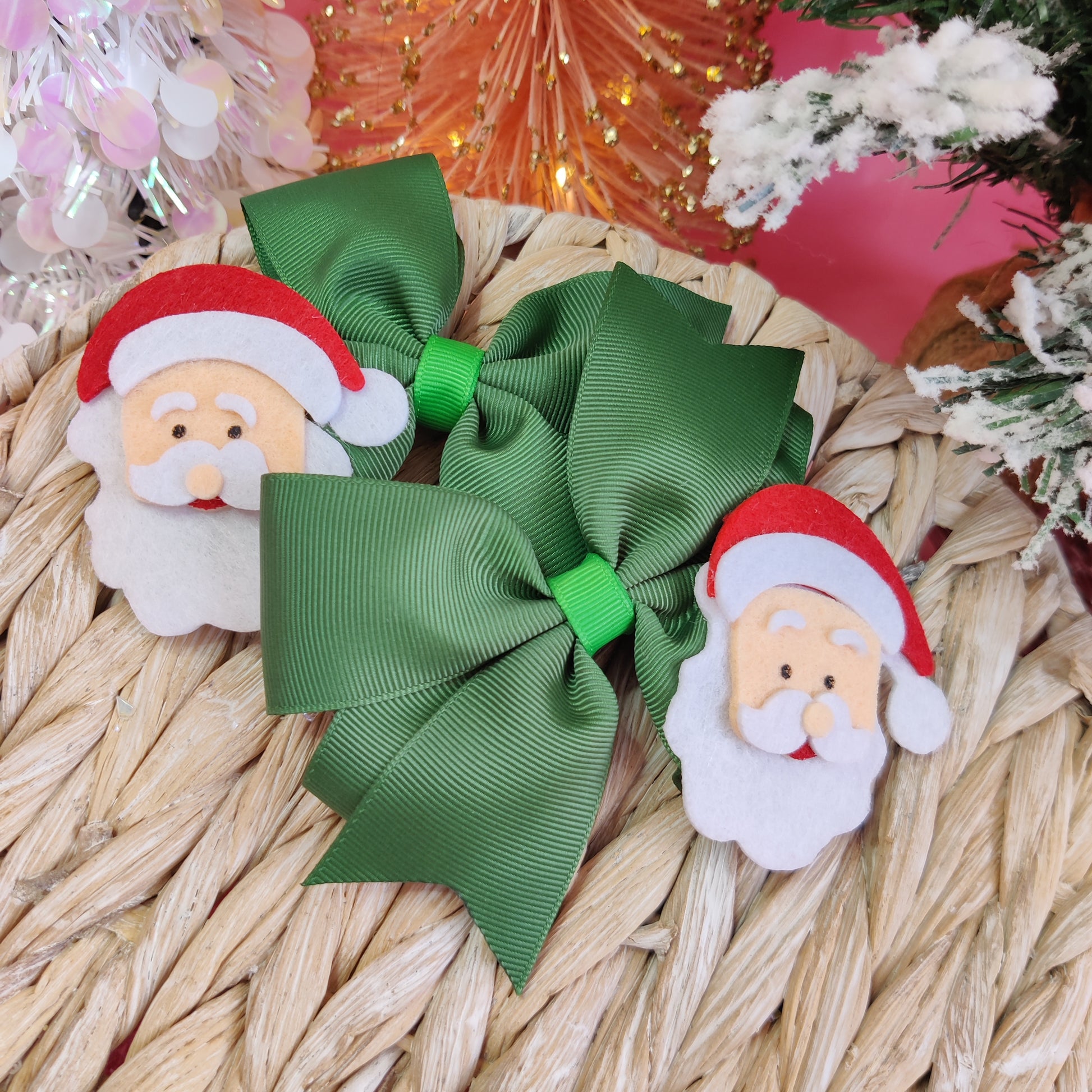 Pareja clips medianos color verde navidad con aplique de SANTA π